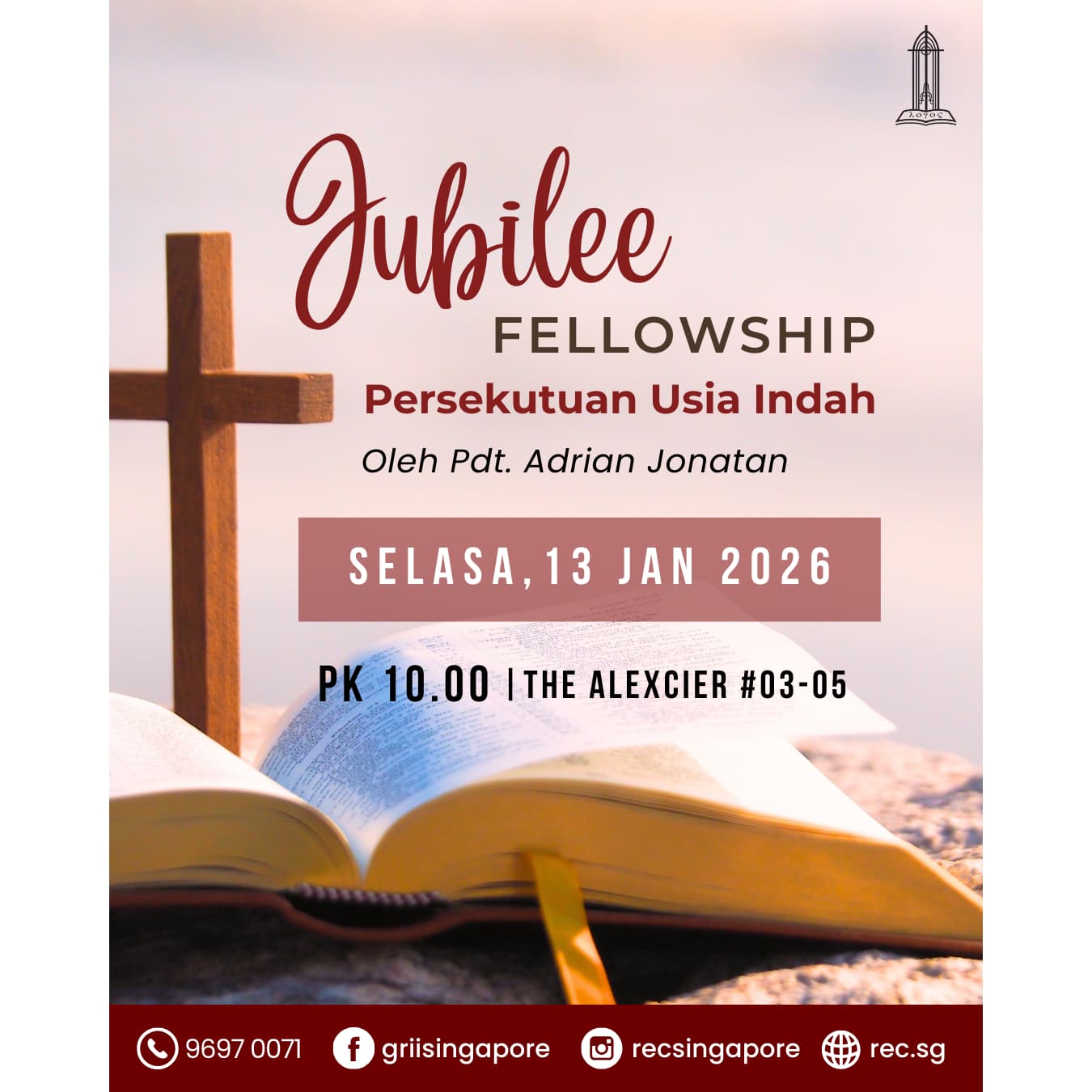 Pelayanan doa bersama bagi pekerjaan Tuhan, gereja Tuhan, dan umat Tuhan setiap hari Rabu.