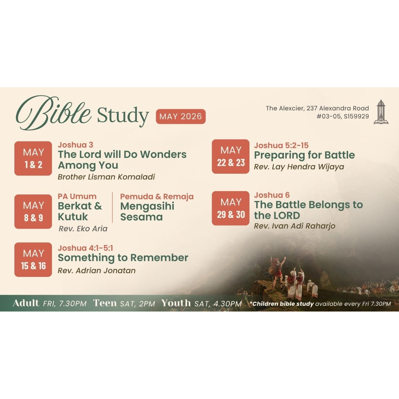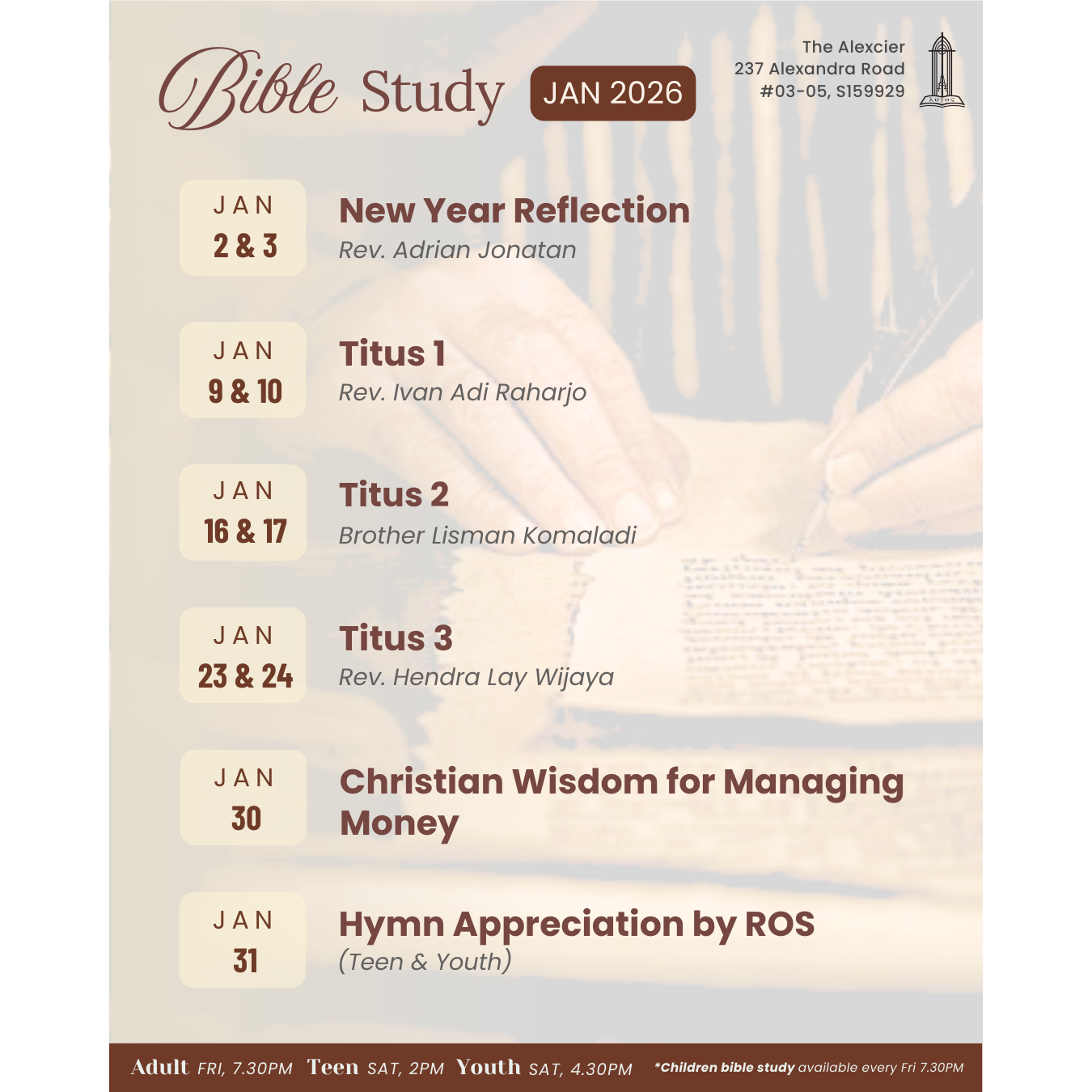 Pelayanan doa bersama bagi pekerjaan Tuhan, gereja Tuhan, dan umat Tuhan setiap hari Rabu.