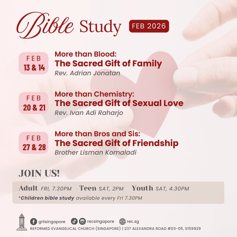 Menyelidiki kelimpahan dan keindahan Firman Tuhan dalam kelas pemahaman Alkitab yang terbuka bagi jemaat umum setiap hari Jumat.