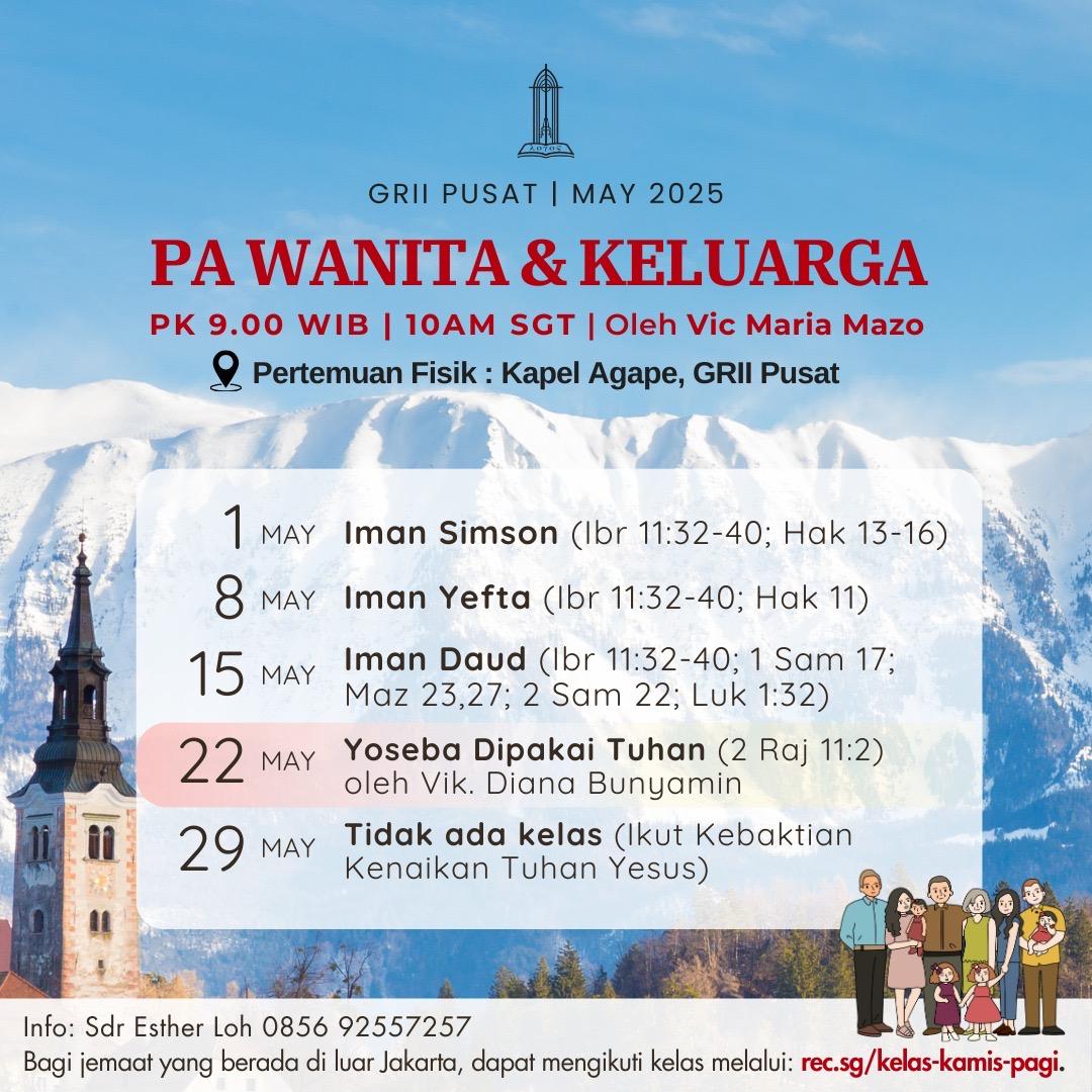 Kelas Kamis/PA Wanita & Keluarga bisa diikuti secara live streaming melalui Zoom Meeting (meeting room dibuka mulai pk 9.45am waktu Singapura/pk 8.45am WIB).